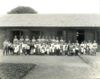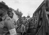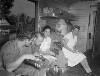 Twee gezinnen in Kamp Schattenberg, de families Polnaya en Paais van woonbarak 81, met hun kinderen in 1956. De foto is gemaakt naast de zandweg die evenwijdig liep aan de brandgracht aan de zuidkant van het kamp, hier rechts op de foto nog te zien. Op de voorgrond vlnr.: Jannie Paais-Flokstra met dochter Reina Paais, Otis Polnaya en Atje Polnaya. Op de achtergrond vlnr.. Herman Paais, Jo Polnaya-Souhuwat met zoontje Arie en Bantji Polnaya.