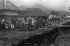 American graves dug in in Iwo Jima cemetery. U.S. Marines dig graves in an American cemetry an Iwo Jima for their comrades who paid with their lives for the taking of the former Japanese bastion 750 miles (1,200 km.) from Tokyo, capital of Japan. The Marines took official possession of the island on March 13, 1945, 23 days after their initial landings. Casualties were 4,189 men killes, 15,308 wounded and 441 missing. More than 21,000 Japanese soldiers were killed. On March 31, the U.S. Tenth Army started to tighten the noose still more tingly around Japan by landing on Okinawa, in the Ryukyu (Loochoo) group, 326 miles (579 km.) from the enemy's home islands. NI 6558