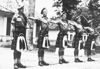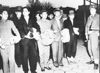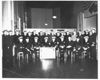 Presentation of Port Director's Chartered Transport Trophy to MS. Weltevreden. First row, sitting (left to right): Lieut.Comdr. Maas, Dutch Naval Liaison Officer, Capt. A. Verhoef, the new Master who will relieve Capt. Rommel, Admiral Helfrich, Delegate to the United Nations Conference, Lt.Comdr. Maclyn W. Wickersham, Naval Commanding Officer of Armed Guard Unit aboard the M.S. Weltevreden, Rear-Admiral Carleton H. Wright, ...