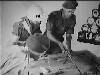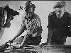 Het opleidings Instituut voor bestuurder van motorvoertuigen, het z.g. S.O.B.M. te Semarang, test de militairen, die hun rijbewijs wensen te halen volgens de nieuwste methoden. Een kijkje aan de verkeerstafel, waar de 2e Luit. Scholten, Hoofd van het Instituut, de M.P.'er J. Valkenburg en de Soldaat van de Geneeskundige Dienst G. Honing, op de verkeersregels examineert.