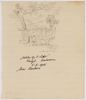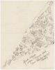 Een ontwerp voor een halsdoek met kampimpressies. Een trein "van Soerabaia", koffer met wandelstok, ketel op het vuur, brood, emmer met bezem "Bonkardag", een weegschaap "TOKO", kerktoren met wachthuisje en een overvliegend vliegtuig, een kamppoort die open staat, "Barak (2) twee, Peuk haaler", handkar met zakken "toko, ketella (zoete aardappel), blubber, suiker" en twee vissen "Naar Soerabaia". In het midden de Nederlandse ...