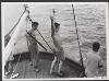 Een ander experiment dat aan boord van de trawlkotter wordt uitgevoerd is het vissen met sleeplijnen. Deze wijze van visvangst wordt "trollen" , "slepen"of "long-lining" genoemd. De lijnen waarvan "De Goede Hoop"er zeven kan uitleggen, variëren in lengte van 35 tot 70 meter. Opmerkelijk is, dat de meeste "strikes"aan de kortere lijnen plaatsvonden, waarschijnlijk omdat de vissen door het schroefwater worden aangetrokken. ...