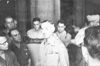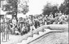 Scene at Nara, Japan. Seeing the sights of Japan are Major Palmer, Public Relation Officer, Miss Lorraine Streeter, War Correspondent of the Australian Womens Weekly, and a German interpreter who escaped from Germany and who travelled to Japan, just before the beginning of the Nazi Regime, but was taken into custody by German ministers in Japan. NI 6509