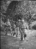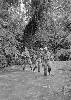 Dit tafelkleed is door J. van Mens - Wessels Boer (Jo), tijdens de bezettingsjaren eerst buiten het kamp, later in de vrouwenkampen Kramat en Tjideng geborduurd en na de capitulatie afgemaakt. Het is een tafelkleed met voorgedrukte bloemmotieven in vier hoeken, gangbaar destijds, evenals het overbekende sterke en kleurvaste DMC borduurgaren. De bezetter voert met onmiddellijke ingang de Japanse jaartelling in (1942 = 2602). Schrijfgerei wordt verboden, dus ook het bijhouden van een dagboek. Dit tafelkleed is eigenlijk te beschouwen als een persoonlijk “dagboek”. Naast de geborduurde bloemen bevat dit kleed in het kort de chronologie van voor haar essentiële gebeurtenissen rond haar gezin en de handtekeningen van vriendinnen. Een lapje stof met naald en draad kan je gemakkelijk verstoppen en is niet zo opvallend, de reden dat het ongeschonden door de oorlogsjaren heen is gekomen. Toelichting op de betekenis van de geborduurde data en tekst. Na de capitulatie 8-3-1942 Batavia wordt de Japanse jaartelling gehanteerd. Batavia wordt niet meer erkend het moet Djakarta worden. 25-6-2602 Djakarta, haar man, F. J. van Mens (Joost) wordt geïnterneerd in kamp A.D.E.K. Na zijn internering verlaat Jo, waarschijnlijk om veiligheidsredenen, hun huis samen met haar 3 kinderen (Pieter geboren in 1930, Mark geboren in 1932, Greet geboren in 1937). 21-7- 02 trekt zij in bij J. van Oosterzee - de Geus (goede vriendin van haar) L .van Oosterzee en Christie. Alle Europese mannen zijn intussen geïnterneerd, maar hier is nog een man in huis (zij het in slechte gezondheid), zij is dokter en daar hebben de Japanners nog enig ontzag voor. 29-10-02 Mark wordt ernstig ziek opgenomen in St.Carolus, voor zijn leven wordt gevreesd. Bij hoge uitzondering mocht zijn vader, die op dat moment nog in A.D.E.K. was, hem bezoeken. Hij herstelt! 15-4-03 internering in Kamp Kramat. 18-8-03 duidt op de datum van overplaatsing naar kamp Tjideng. 14-4-04 neemt kampcommandant Sonei de leiding over van kamp Tjideng. 29-8-04 de jongens moeten weg naar een jongenskamp. Zij noteert Grogol, 28-11-04 Tjimahi, 9-9-05 15de Bat(aljon) in Bandoeng (Bandung). 15-3-05 21-4-05 Vincentius. Wegens ernstige ziekte wordt zij overgeplaatst naar het Vincentius hospitaal buiten Tjideng. Tegen ieders verwachting komt zij terug. Onder de data van Vincentius staan twee niet goed leesbare handtekeningen. Waarschijnlijk van vriendinnen aan wie zij tijdens haar afwezigheid de zorg over haar dochter heeft toevertrouwd en eventueel er na, indien zij zou overlijden. Na het vertrek van haar zonen was haar dochter met haar moeder immers alleen in het kamp. 14-8-05 Vrij (vergissing van één dag) 18-10-05 Mark, haar tweede zoon komt als eerste terug in Tjideng. Twee maanden na de capitulatie van Japan 1-11-05 volgen Vader en Pieter. Het gezin van Mens is in Tjideng herenigd.