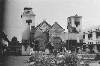 Tokyo, March .... the outside view of Homei-Den, the most spacious hall in the whole palace. The celebrations of Imperial Birthday and the Kigensatau, the day when the first Emperor Jimmu enthroned, 2595 years-japanese calender. The most georgeous and colourful hall in the whoel palace. Note the purely Japanese style pine trees and english style fountain and gravelled roads instead of concrete roads. Also not purely Japanese ...