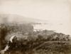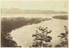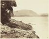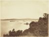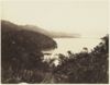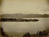 Gezicht vanaf de Papenberg op, het op de landtong aan de linkerzijde van de ingang van de baai gelegen, Bandanaira.