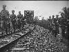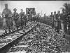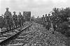 Martapoera: Bij de mannen, die gelegerd zijn in Martapoera gaat het gemoedelijk toe. Ieder weet zijn vaste plaats en heeft zijn eigen werk. Patrouilles lopen is natuurlijk ook een onderdeel van de dagtaak. Hier een patrouille langs de spoorbaan, gelopen door militairen van de ondersteuningscompagne. Links: sergt. Han de Wolf uit Huizen (N.H.), sold. I. Dick van Kuilenburg (Maurik, Betuwe) en sold. Ybert Dalm uit Haarlem: ...