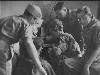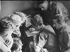 Een aquarel van twee schakers en twee toeschouwers. Rechts op de voorgrond het hoofd van één schaker met bril, van links, en profil gezien. Voor hem het schaakbord. Achter het schaakbord een man, vanaf de romp gezien, het hoofd leunend op de linkerarm. In het midden op de achtergrond twee staande, toekijkende mannen, vanaf de heupen gezien afgebeeld.
