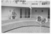 De ministers L.H. Neher en dr. W. Drees aan boord 'Renville' te Tj. Priok, eind 1947. (Aan de rand van het zwembad een zeemeermin in een schelp.) NI 7970