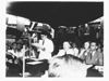 Hulp van Hadji Agoes Salim en Sewaka aan mr. Sartono tijdens diens toespraak aan boord van de U.S.S. 'Renville', Tg. Priok. NI 8036