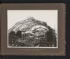 Albumblad met een foto van de stationsoverkapping voor het treinstation te Tandjong Priok, in aanbouw, gezien van binnenuit. Onderdeel van het fotoalbum Machinefabriek Braat Soerabaia-Djocja-Tegal, ca. 1916-1924.