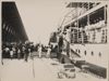Een tekening in gewassen inkt met de afbeelding van de inscheping van krijgsgevangenen op 16 oktober 1942 in de haven van Tandjung Priok. Het schip zette met 3000 krijgsgevangenen aan boord koers naar Singapore, waar het op 25 oktober aankwam.