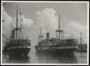 Schepen aan de kade te Tandjong Priok. Onderdeel van een groep stereofoto's van Robert Julius Boers, chef van het staatsbedrijf de Banka-tinwinning op Banka, uit de periode ca. 1900-1922.