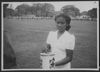 Foto van een verpleegster met gitaar, vergezeld door andere verpleegsters en een jonge patiënt; foto's van Rika Lourant, actief bij het Rode Kruis in oorlogstijd bij de Verpleegcolonne afdeling Nijmegen en naoorlogs in Nederlands-Indië; achterop gestempeld met: ''Foto Grijpink, Stijnbuysstraat 4a Nijmegen'', niet bekend of dit de fotograaf of de ontwikkelaar is.