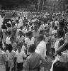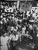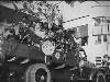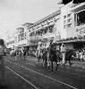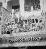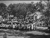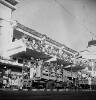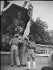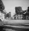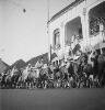 Ter gelegenheid van het Regeringsjubileum van H.M. Koningin Wilhelmina organiseerde de Militaire Luchtvaart op het vliegveld Tjililitan een uitgebreide tentoonstelling en vliegdemonstraties. Grote aandacht trok het stuntvliegen, uitgevoerd door vliegers van de Vliegbasis. Ook op de ere-tribune werden de vele staaltjes van bravoure met spanning gevolgd. V.l.n.r. o,.m. de heer Warners, Secretaris van Staat voor Verkeer en Waterstaat, Kolonel v.d. Eem, Commandant van de M.L., Mevrouw Spoor, Dr. van Mook en de heer Neher.