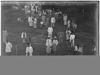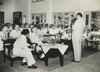 Bijeenkomst van leerlingen van de lagere school in Kamp Schattenberg in het jeugdlokaal. Er wordt eten en drinken uitgedeeld. De reden van de bijeenkomst is onbekend. 1e rij, vlnr.: Ietje Kesaulija, Etty Amanupunjo, Sofie Salakory en Lien Haumahu. 2e en 3e rij, vlnr.: Johanna Lawalatta, Magda Joseph, Augustina Suripatty en Poppy Sinay. 4e en 5e rij, vlnr.: Afia Pattinasaranij, Hendrika Pattiwael, Lies Jansen, Martin Sijauta, ...