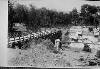 Zwart-wit stereofoto met de afbeelding van een brug over de Manuk rivier.
