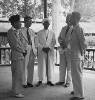 Nederlands Indië 7 December Divisie; groep jonge mannen poseren voor de camera; veelal gekleed in kostuum met stropdas; één houdt een beker (trofee) omhoog, reünie?