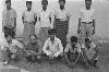 Krijgsgevangenen in "Glodok". Een achttal Indische deserteurs en twee Japanners, die tijdens de acties op Java door de Nederlandse troepen gevangen genomen zijn, werd naar de gevangenis te Glodok overgebracht. V.l.n.r. staande: Satjoeddin Khan (gevangen genomen te Cheribon, vroeger behorende tot 161 G.P.T. 2 M.T. Regt.10e.Div.),Mahindar Sing (Bandoeng, 2nd Comouni Regt.49 Brig. 23 Div.), Michael (Dajeuhkolot, 49 Brig. ...