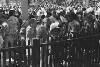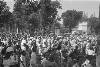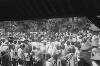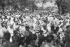 Een menigte Europeanen en Indonesiërs, voorzien van spandoeken en andere aanhankelijkheidsbetuigingen van o.a.