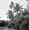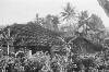 Nieuw-Guinea; palmbomen, berg, kampong