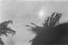 Biak, Nieuw-Guinea; twee palmbomen van onderaf gefotografeerd