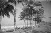 Nederlands Indië 7 December Divisie; kampong gelegen aan meer onder palmbomen