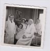 Foto van verpleegsters, bij het bed van een patiënte; foto's van Rika Lourant, actief bij het Rode Kruis in oorlogstijd bij de Verpleegcolonne afdeling Nijmegen en naoorlogs in Nederlands-Indië; achterop gestempeld met: ''Foto Grijpink, Stijnbuysstraat 4a Nijmegen'', niet bekend of dit de fotograaf of de ontwikkelaar is.