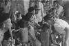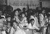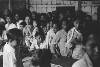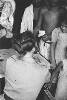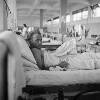 Foto van verpleegsters, bij het bed van een patiënte