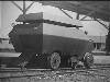De omgebouwde en van pantsering voorziene railjeep, bestemd voor treincontrole en baanvakbeveiliging, geconstrueerd door...