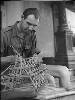 Soldaat H. Boeschoten uit Zuilen van de Genietroepen, gelegerd te Tamboen heeft reeds aan de bouw van heel wat militaire barakken en loodsen meegewerkt. De bouwmeester en zijn schaalmodel, dat straks een natuurgetrouwe weergave van de echte barak zal zijn.