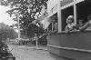 Tram met propagandatekst voor een onafhankelijk Indonesië. Tram 4 (rijdend tussen Amsterdamse Poort en Tanah Abang in Batavia / Jakarta) van de Bataviasche Verkeers-Maatschappij (BVM) (vanaf oktober 1945 Tram Djakarta Kota) met opschriften 'Away with tyranny and oppression!' en 'Van Mook en Plas you cause a rebellion in Indonesia', eind september 1945. NI 9476