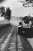 Marva, drukke straat met electrische tram, lijn 5, burgers en militairen