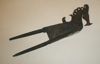Zeer smalle ijzeren lanspunt op een korte, geringde steel, overgaand in een smalle, ijzeren steelrin...