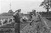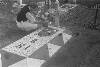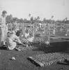 Zwartwit diapositief met de afbeelding van vier Javaanse fijnsmeders die koperwerk ciseleren, ieder op zijn eigen werkblok. Eén van de mannen drinkt op het moment thee. De afbeelding op dit diapositief werd gemaakt voor de publicatie "Indië in Beeld" (1911) en een reeks schoolplaten over Java en Sumatra, uitgegeven in 1912. Beiden waren bedoeld om meer bekendheid te geven aan Nederlands-Indië, 'die mooie, rijke Koloniën, ...