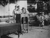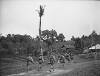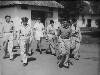 Spelende buurtkinderen hadden aan ruimte geen gebrek in Kamp Schattenberg. Maar de bosrijke omgeving verkennen met de fiets werd ook vaak door de jeugd gedaan. Op de achtergrond woonbarak 81. Vlnr.: Mieke Tahalele, Sara Polnaya, Arie Gaspersz, Atje Polnaya, Vero Pentury, Ensa Sinaij, Lies Siahaija en Jan Saimima.